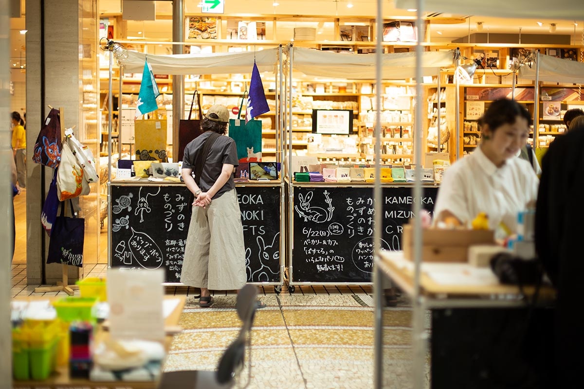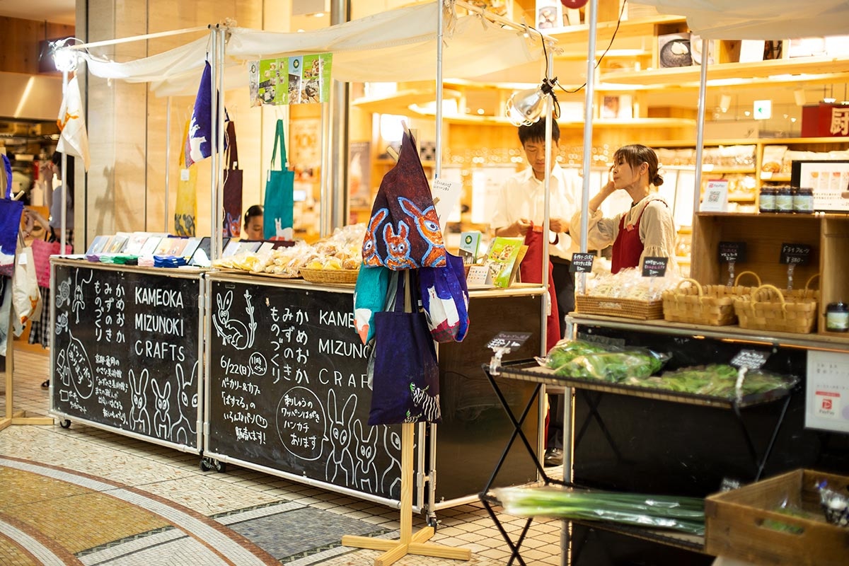 無印良品 京都山科《つながる市》に「かめおか みずのき ものづくり」が出店しました。《つながる市》とは、地域の方々と一緒につくりあげる期間限定のマーケット。無印良品が地域とのつながりを深め、ヒトとマチをつなげる役割を担うことを目指し不定期に開催されています。