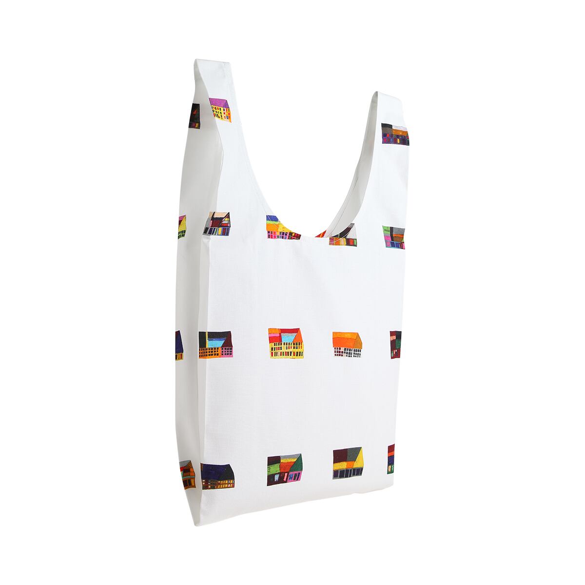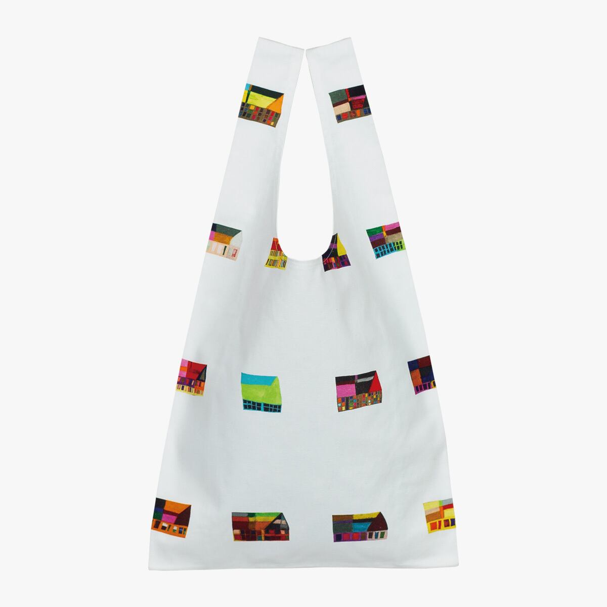 エコにアート。お買い物袋タイプのマルシェバッグ。小さく折りたためるのでバッグに入れておくと便利です。