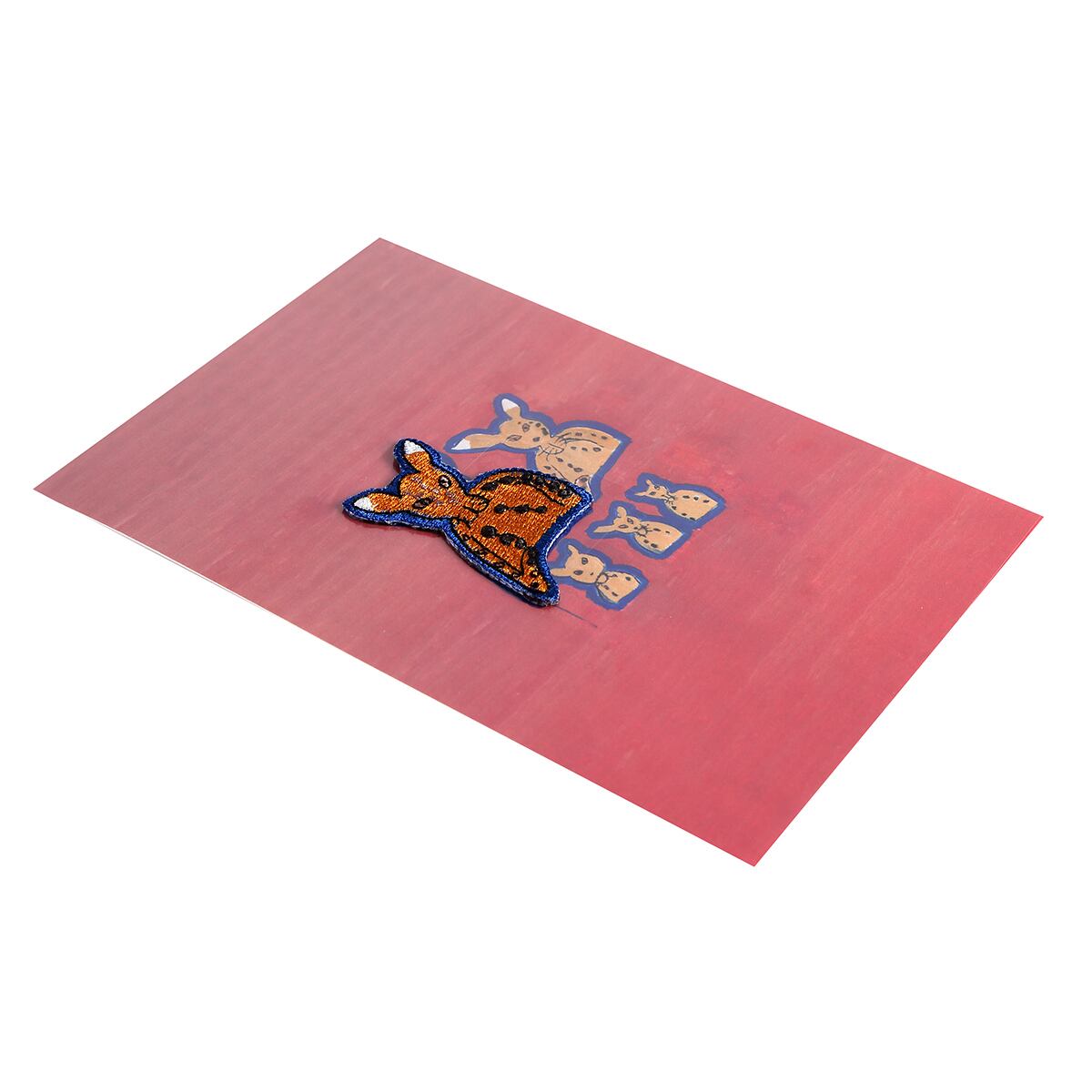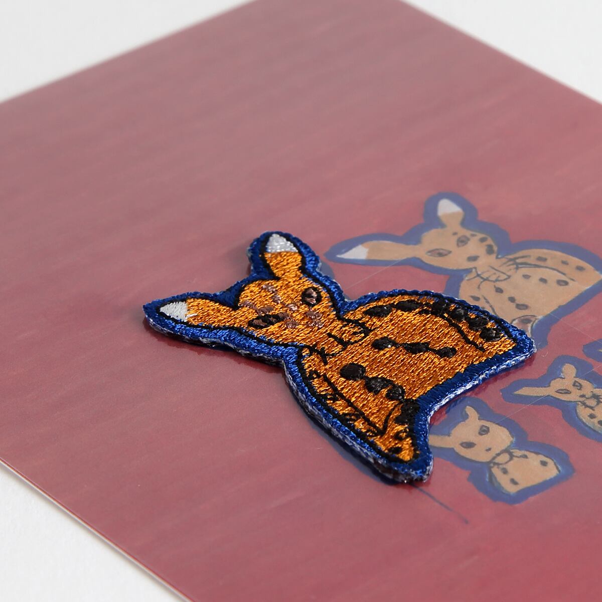 ワッペン付きのポストカード。ワッペンはアイロン・シール両用タイプ。手持ちのシャツやバッグにアイロンで圧着したり、スマホケースやノートに貼り付けたりと、アイディア次第で自由にカスタマイズできます。
