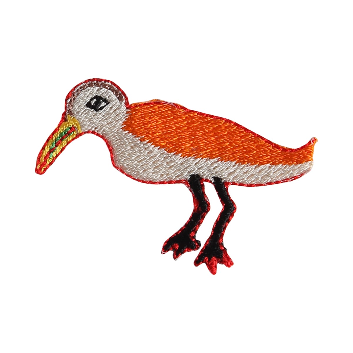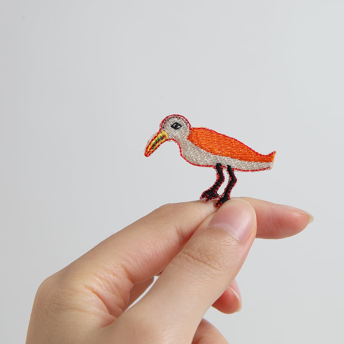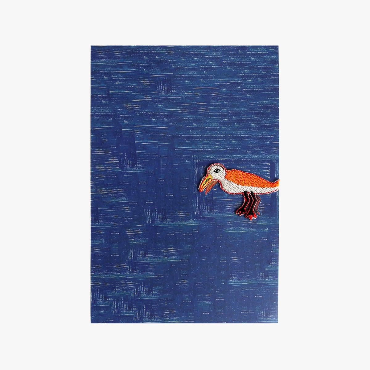 青い背景にくっきりと浮かぶオレンジ色の羽と細長いクチバシを持ったこの鳥は、水鳥でしょうか。じっと水の中で動く小さな虫や魚を狙っているのかもしれません。