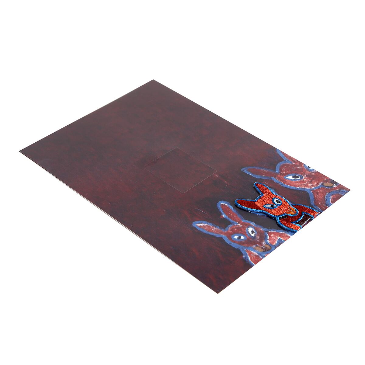 ワッペン付きのポストカード。ワッペンはアイロン・シール両用タイプ。手持ちのシャツやバッグにアイロンで圧着したり、スマホケースやノートに貼り付けたりと、アイディア次第で自由にカスタマイズできます。