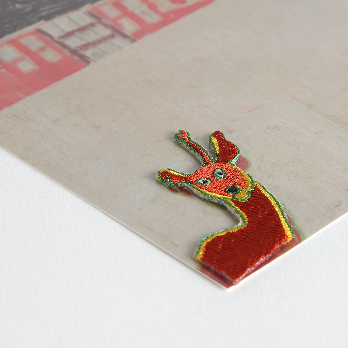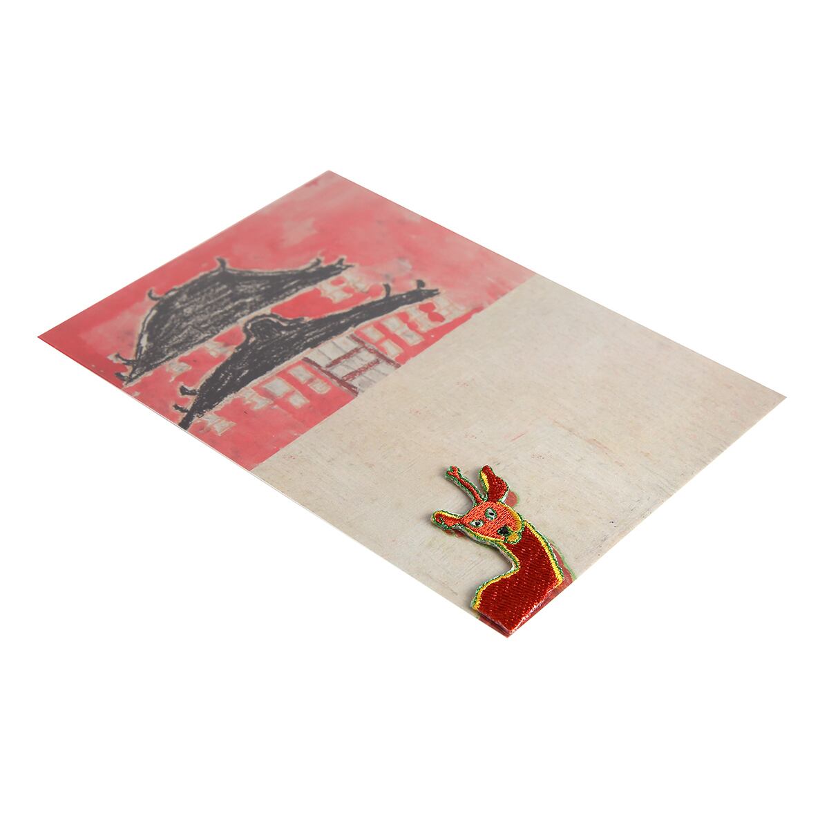 ワッペン付きのポストカード。ワッペンはアイロン・シール両用タイプ。手持ちのシャツやバッグにアイロンで圧着したり、スマホケースやノートに貼り付けたりと、アイディア次第で自由にカスタマイズできます。