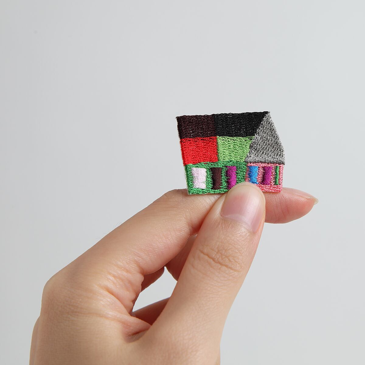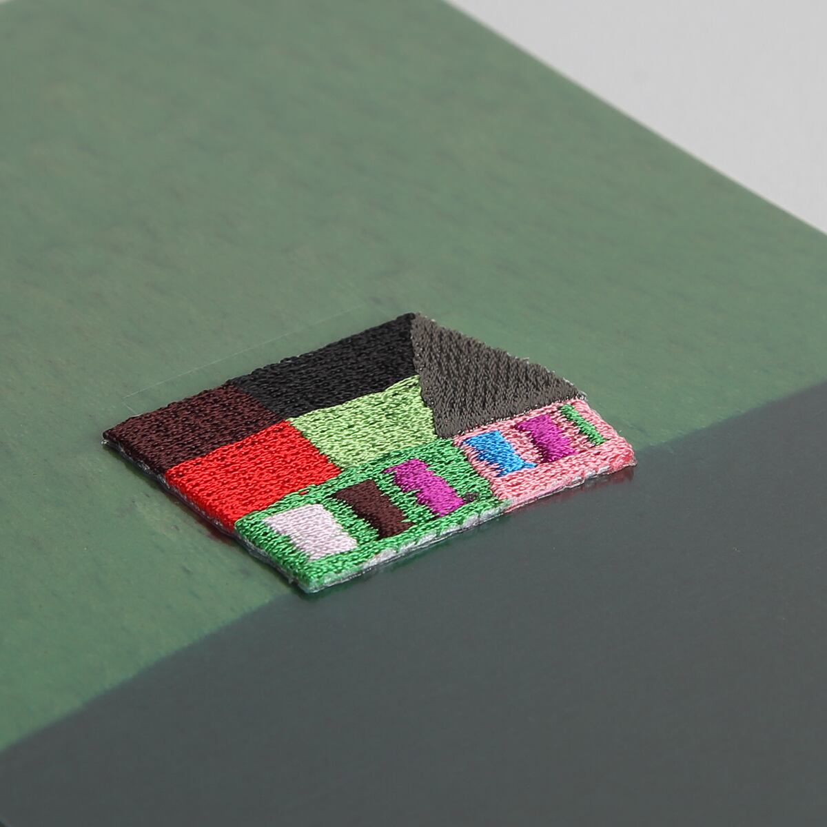 緑色が多く使われているので、草原や山の中に立てられた小屋を連想させます。ピンクなどの差し色も効いていて、ファッションにも取り入れたくなるような配色です。