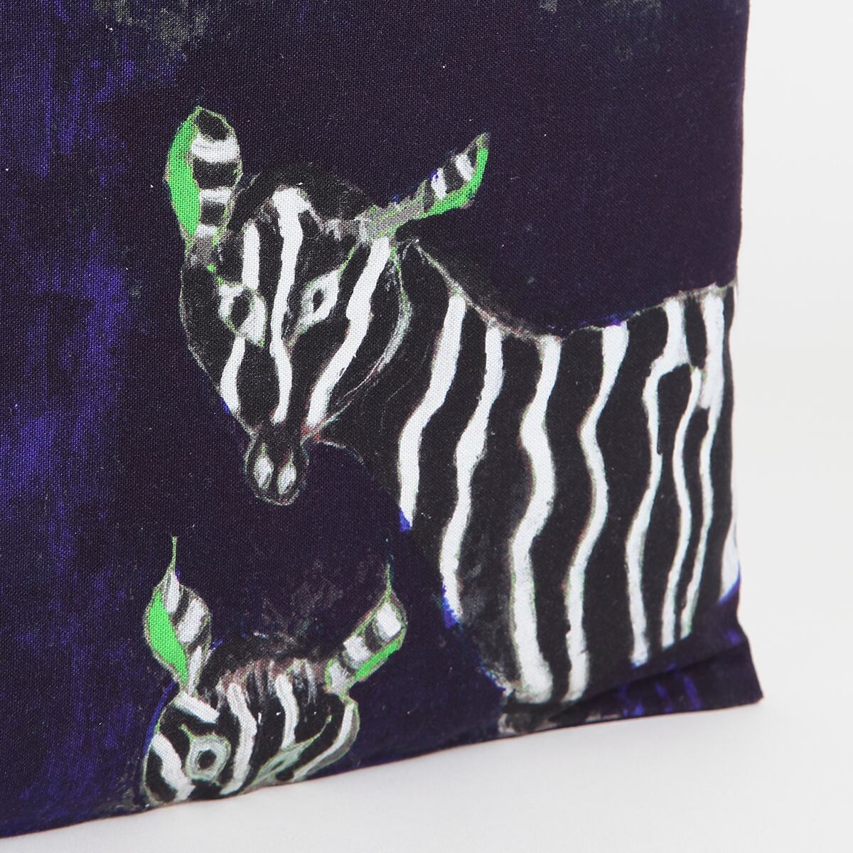 夜を彷彿とさせる深い青色を背景に佇む2頭のシマウマ。よく見ると目元や耳が黄緑色に縁取られていて、配色と構図の美しさから人気のある作品です。