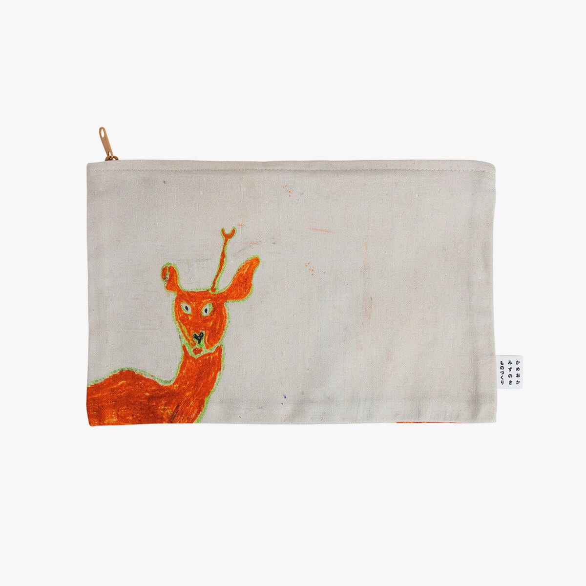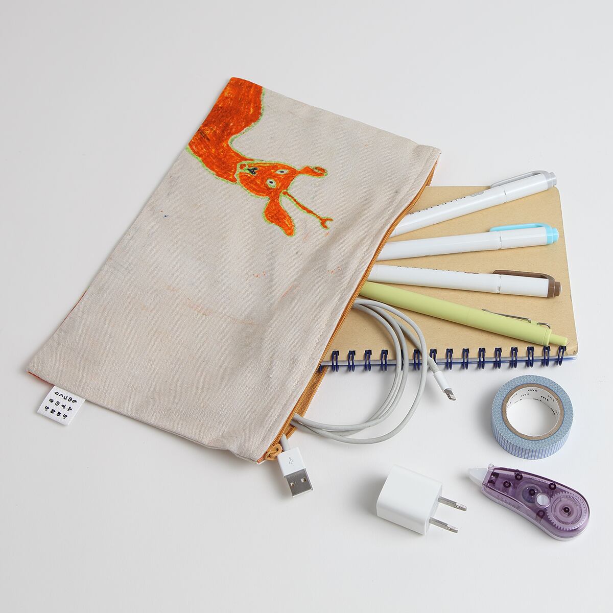バッグの中にアート。マチのないタイプの平たいポーチは、使い方自由自在。