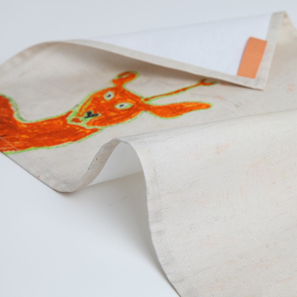 キッチンにアートを。ループのついたキッチンクロス。一人用のテーブルマットにしたり、ループをかけて布巾として使ったり、洗い終わった食器にかけたりと、様々な用途でお使いいただけます。
