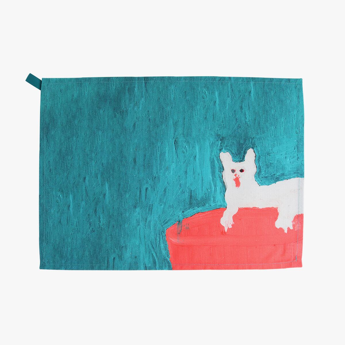 キッチンにアートを。ループのついたキッチンクロス。一人用のテーブルマットにしたり、ループをかけて布巾として使ったり、洗い終わった食器にかけたりと、様々な用途でお使いいただけます。